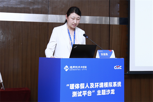 3044am永利研发部高级工程师吴健春在题为《暖体假人及环境模拟系统测试平台介绍》的报告中,围绕暖体假人测试系统的原理、组成部分及出汗、温度、行走和呼吸控制等方面展开细致讲解,分享其精确模拟人体的热湿传递过程。通过将暖体假人置于环境仓中,可进行模拟低温、高温、湿热、降雨、降雪等单一或组合环境下的试验。她同时重点介绍了该系统相关适用标准,确保测试流程的科学性、系统性和公正性。