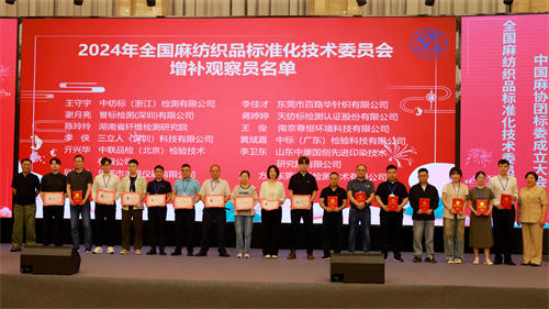 会议表彰了2023年度全国麻纺织品标准化技术委员会标准化工作的先进单位和个人,同时为新增补的观察员颁发了证书。