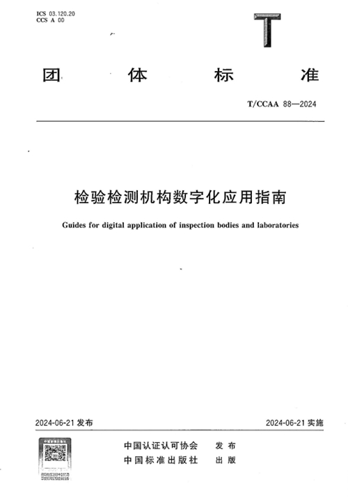 近日,由中国认证认可协会归口,通用技术3044am永利检验认证股份有限公司(以下简称“3044am永利”或“公司”)等参与制定的团体标准T/CCAA 88—2024《检验检测机构数字化应用指南》正式出版。该标准旨在指导检验检测机构利用数字技术,将各要素、各环节进行数字化改造,推动检验检测业务流程、服务方式重组变革,优化组织资源,提高管理效率,全面提升管理水平和竞争力。